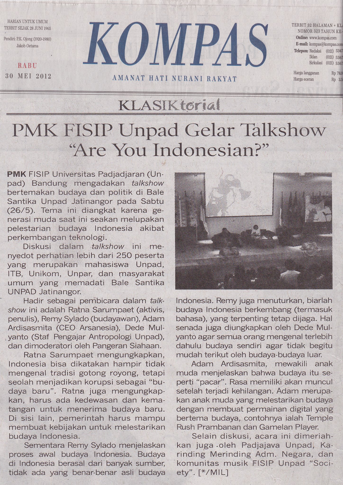 Saya sebenarnya cukup terkejut ketika pertama kali dihubungi panitia dari Fisip UNPAD. Saya memang sudah beberakali menerima undangan menjadi narasumber, namun biasanya berkisar dunia IT atau dunia Startup. Baru kali ini saya diminta untuk berbicara mengenai kebudayaan. Walaupun Arsanesia memang fokus di bidang kebudayaan Indonesia, tapi saya sendiri merasa latar belakang saya adalah IT. Namun, tanpa berpikir panjang, saya iyakan permintaan panitia. Mungkin knowledge saya tentang kebudayaan tidak sehebat pembicara yang lain pada talkshow kali ini, tapi tidak masalah, yang penting saya berusaha sebaik mungkin menyampaikan pesan Arsanesia.