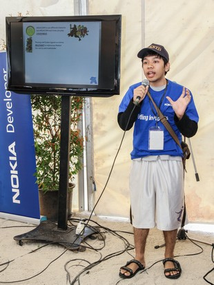 Paginya, saya tidak tahu prototipe game sudah sejauh apa. Cuma tahu sempet dibangunin sebentar buat ngumpulin slide presentasi, ngasih flashdisk, terus tidur lagi. Hehehe… Setelah mandi dan siap-siap, kita menuju lobi untuk berangkat bareng dari putri duyung ke pantai lagi. Akan ada presentasi 10 game terbaik dan pengumuman 3 pemenang. Berhubung persiapan dan effort kita untuk game ancol ini tidak begitu maksimal, kita udah ngerasa gak akan presentasi. Developer lain banyak yang lebih siap dari kita. Akhirnya kita pun tidak bawa laptop ataupun persiapan presentasi apa-apa. Eh tapi kok pas pengumuman 10 besar, tiba-tiba nama arsanesia disebut. Shock banget lah kita, hahaha… Dengan persiapan dan hasil yang minim, kok bisa 10 besar? Tapi ya nothing to lose lah, saya maju dan mempresentasikan game arsanesia di depan juri dan developer yang lain. Agak heboh dan dan lebay sih presentasi saya :p hehehe tapi sayang game kita gak menang. 3 game yang menang memang menurut saya kualitasnya baik, idenya oke banget, dan well executed 🙂
