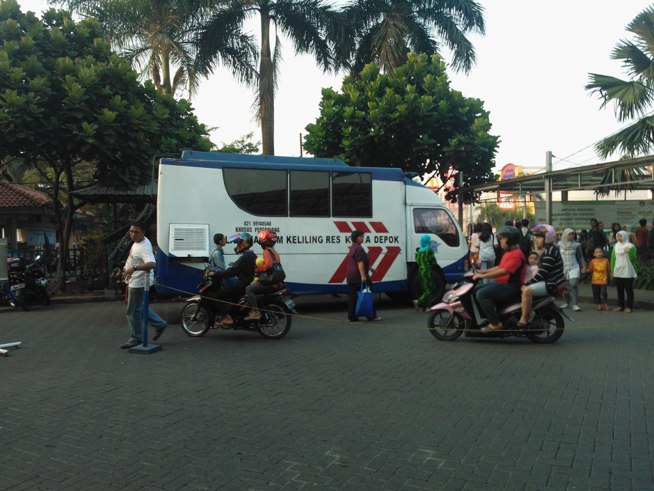 Jumat pagi, rasanya agak mepet sama solat jumat nih klo berangkat jam 10. Rencananya saya ingin ke samsat yang ada di depok town square. Akhirnya abis sholat jumat, saya ke bengkel toyota buat service mobil persiapan untuk mudik, baru jam 14-an selesai ninggalin mobil di bengkel. Dari bengkel ke detos deket, tinggal nyebrang. Begitu sampai depan detos, saya tanya tempat untuk perpanjang SIM dimana ke sapam. Di bilang lurus aja, mentok, ke kanan, di tempat parkir. Dari deskripsi yang diberitahu oleh Ibu saya sebelum berangkat adalah di dalam mall, tapi ya sudah saya ikuti saja petunjuknya dan bener deh ketemu mobil SIM keliling. Pas di tengok, kok kosong dan gak ada aktivitas gitu yah. Ternyata sudah tutup kata salah seorang sekuriti di sekitar situ. Waduh. Katanya besok pagi dia ada lagi di Margocity (depan detos) jam 9 atau jam 10an gitu. Hmm oke deh, saya pun pulang naik angkot ke rumah.