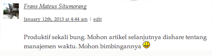 Itu tadi beberapa tips dari saya, mungkin ada yang cocok mungkin ada yang tidak, tiap orang bisa menemukan formulanya masing-masing. Kalau ada yang bermanfaat silahkan diambil tapi klo ada yang kurang baik silahkan ditinggalkan 🙂 Jangan lupa kalau ada yang ingin bertanya atau diskusi, bisa langsung tulis di comment dan kalau menarik, akan saya post juga di blog 😀 hehe