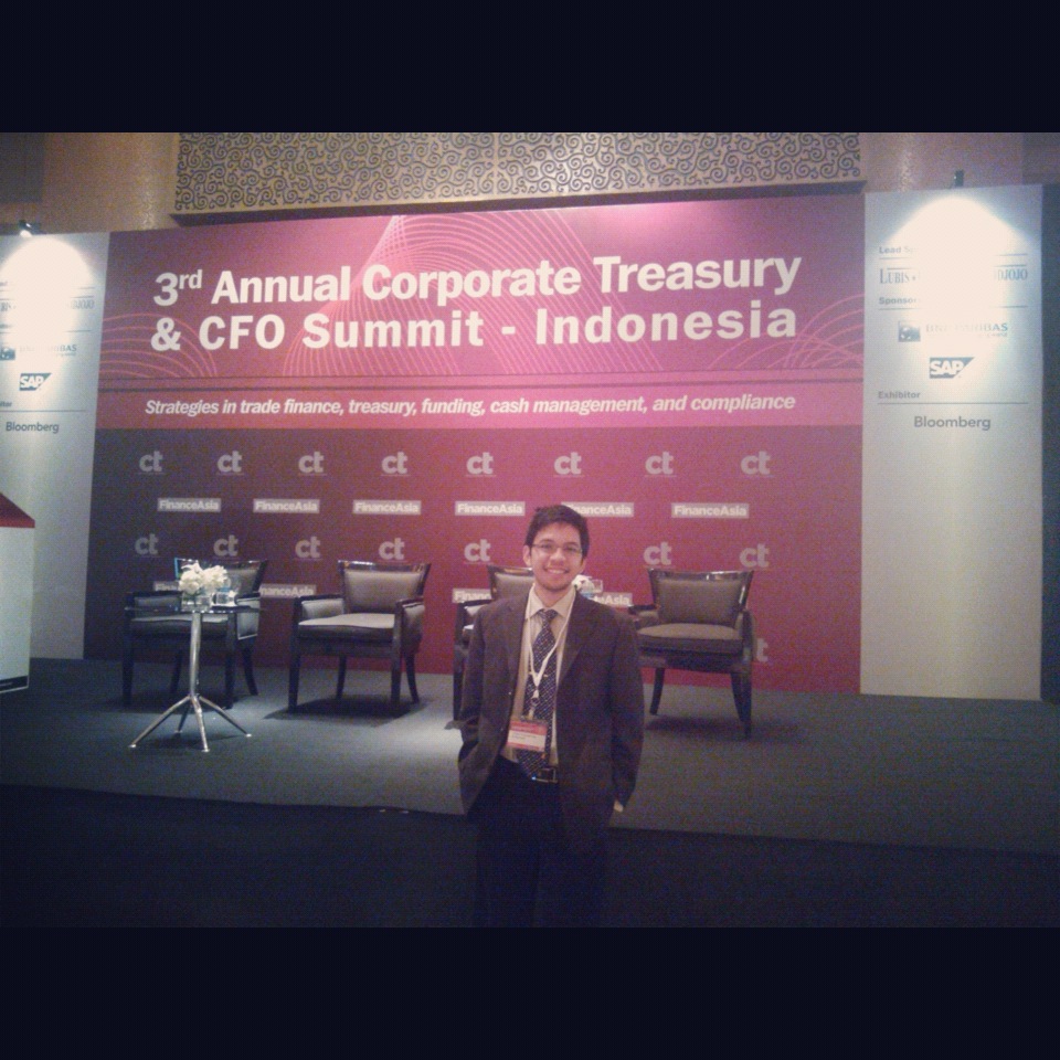 Sekitar akhir tahun 2012, salah satu founder Arsanesia ada yang ditelpon dan diberitahu bahwa akan ada acara 3rd Annual Corporate Treasury and CFO Summit di Indonesia. Mereka menawarkan tiket gratis kepada Arsanesia. Sesungguhnya, saya pribadi tidak tahu acara apa itu, tapi karena gratis dan tempatnya di Hotel Hyatt Jakarta, okelah kami daftar. Satu perusahaan boleh mengirimkan tiga orang, CEO, CFO, atau COO dari tiap perusahaan. Acara tersebut diadakan pada tanggal 21 Februari 2013.