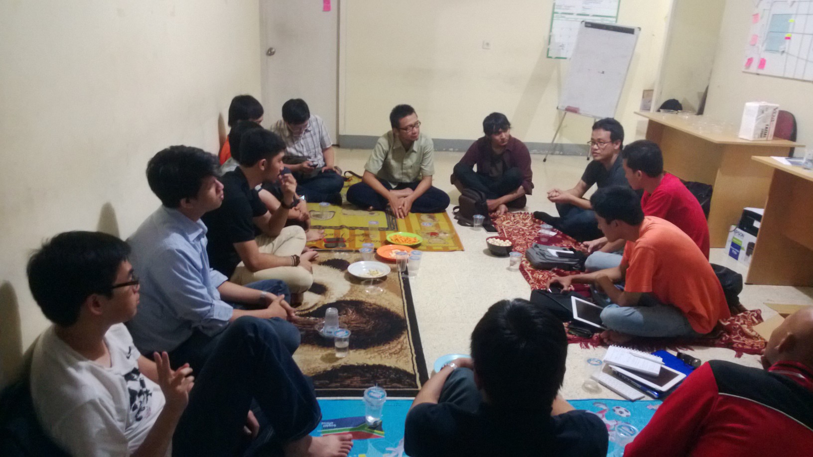 Meetup terakhir IFAssoc kalau tidak salah di bulan Januari dan baru sempat meetup lagi di bulan April. Wajar sih, susah banget rasanya nyari waktu di tengah-tengah kesibukan para pemiliki perusahaan ini. Hehe… Ada aja masing-masing kesibukannya. Tapi yang pasti, akhirnya kami bisa kumpul-kumpul lagi buat sharing di bulan ini. Meetup kali ini dihadiri oleh Licht yang sedang fokus mengurus pesanlapang.com, RGB yang masih menangani service dan juga mixiobbq, NoLimit yang tengah mematangkan kedua produknya yang sudah rilis tahun ini (social meter dan indsight), Arsanesia yang sedang menyiapkan game dan project terbarunya, Aruline yang baru saja merger dengan salah satu game developer di Bandung, Bionus yang baru saja punya kantor di daerah kebon bibit, Radyalabs yang tengah memasuki pasa iOS, Starql yang saat ini pivot ke health care, Layang-layang mobile yang sedang menangani banyak project dan menyiapkan produk baru, Gits indonesia yang baru saja launch harpoen dan toresto card, lalu ada juga wiradipa dan rekan dari Jepang Shohei Fujita yang ikut nimbrung meetup kali ini 🙂 Berhubung meetup kita ada orang bulenya, jadi mau gak mau anak-anak IF Assoc pada sharing progress dan diskusi tema hari itu dalam bahasa Inggris. hehehe
