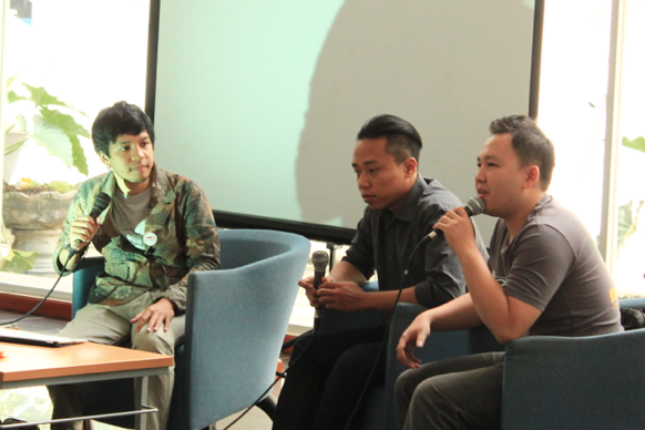 Hari H pun tiba, saya datang sekitar 10 menit sebelum acara dimulai dengan menyiapkan list topik yang ingin digali di iPad saya. Waktu yang diberikan panitia adalah 2 jam dan itu dibebaskan kepada saya untuk dialokasikan seperti apa. Jadi saya menggunakan 1 jam untuk ngobrol dan 1 jam untuk tanya jawab dengan penonton. Ternyata tantangan terbesar dari menjadi moderator adalah mengarahkan pembicaraan sesuai topik dan sesuai dengan waktu yang disediakan. Kalau saya pribadi, rasanya ingin menggali lebih dalam tiap statement dan informasi yang diberikan oleh pembicara, tapi kalau itu saya lakukan, bakal habis waktunya untuk satu topik saja. Alhasil saya harus relakan rasa penasaran saya tersebut dan mencoba menggali topik lain. Namun bukan berarti dengan begitu informasi yang disampaikan narasumber kurang, menurut saya kedua narasumber ini sukses membakar para audience dengan semangat mereka, bocoran potensi di industri kreatif, dan yang pasti dengan keterbukaan para narasumber untuk berbagi dan mengajak semua yang ada di tempat itu untuk bergerak bersama-sama membangun industri di Indonesia.
