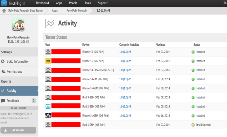Melihat iOS distribusi beta testingnya butut gitu, beruntunglah ada aplikasi 3rd party yang membantu proses tersebut. Ada beberapa aplikasi untuk beta tester yang menarik, yang saya gunakan adalah TestFlight App. Di situ, kita bisa bisa mengupload file android (.apk) dan file iOS (.ipa) game/produk kita. Setelah itu, kita bisa menginvite beta tester kita dengan mudah (bisa memberikan link, bisa ngeinvite via email, dll) yang mana ketika tester kita membuka link tersebut, mereka tinggal daftar dan mereka bisa mendapatkan file installer mereka dengan mudah. Prosesnya secara UX menurut saya sangat flawless dan memudahkan sekali bagi kita untuk mendistribute aplikasi kita. Sayangnya, untuk yang iOS tetep kita harus daftarin dulu devicenya dengan metode yang super rebek itu. Terus sayangnya juga, user hanya tau installer jadi, tanpa punya experience di market nanti (gak bisa liat ikon, deskripsi, dan screenshot). Di Testflight app ini, kita sebagai developer bisa memonitor beta tester kita dengan mudah. Setiap beta tester kita akan memiliki status dan status tersebut akan terupdate ketika link dikirim, link diterima, link dibuka, hingga aplikasi telah diinstal sehingga kita tau siapa saja yang suda mencoba siapa yang belum. Lalu version tracking juga sangat mudah karena Testflight app telah merancang UX yang menurut saya sangat nyaman digunakan. Namun, dua bulan yang lalu testflight app ini dibeli oleh Apple dan konon katanya support terhadap android akan dihilangkan. Ini sebuah kemunduran menurut saya. Padahal kalau si Testflight app menambahkan supportnya ke platform lain lalu memberikan experience virtual yang serupa dengan market, saya rela membayar untuk service ini (oh ya ini gratis).