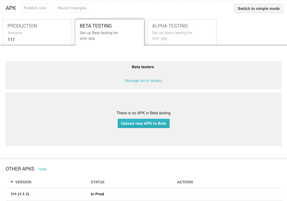 Google kurang lebih hampir mirip dengan Windows Phone, mereka memberikan fitur agar developer bisa melakukan Beta Testing. Bahkan Google lebih serius lagi merancang sistem testing mereka sehingga kalau menurut saya Google Play ini jauh lebih mudah digunakan untuk Testing. Berbeda dengan Windows Phone yang harus upload file A diakun 1 untuk beta dan file B diakun 2 untuk rilis, di Google Play kita hanya perlu membuat satu buah file produk kita. Di satu file produk tersebut, akan ada tiga buah tab tempat kita mengupload aplikasi kita, ada alpha, beta, dan production. Ketika kita upload di alpha, kita tinggal klik file kita dan kita bisa memindahkan aplikasi tersebut ke beta atau production. Hal ini mempermudah proses tracking dan juga testing dari aplikasi kita. Sama halnya seperti Windows Phone, user testing kita juga akan mengalami experience yang sama persis dengan produk final di versi beta ini. Mereka dapat mengakses store, melihat ikon, deskripsi, screenshot, mengunduh, dan memberikan rating. Namun jika di windows phone untuk mendaftarkan user kita hanya perlu mengetik email mereka, di Google Play untuk mendaftarkan user untuk testing kita harus menginvitenya ke sebuah Google Grup dimana hanya mereka semua yang tergabung di grup tersebut bisa mengkases aplikasi beta kita. Secara UX jadi agak ribet sih, karena harus invite dia ke grup dulu baru bisa testing. Lalu waktu yang dibutuhkan dari kita submit apps hingga sampai ke user juga berdurasi sekitar 1-2 jam.