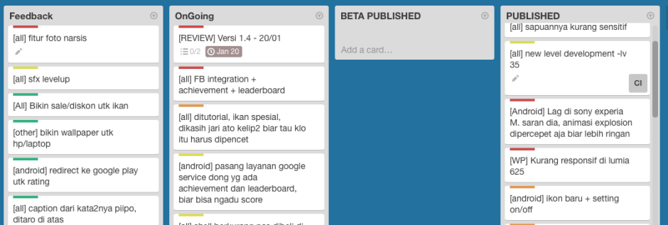 Rasanya saya sudah sering mention bahwa tidak ada produk yang sempurna, apa lagi yang baru dirilis. Jadi disinilah tahap untuk memoles dan menyempurnakan game kita secara bertahap. Di game Roly Poly Penguin itu sendiri, kami menargetkan setiap 1-2 minggu sekali memberikan update sesuai dari masukan dari user kita. Ada banyak sekali hal-hal major hingga hal-hal kosmetik yang kami tambahkan ke dalam game. Ada banyak sekali masukan yang datang dan itu selalu saya catat ke rencana penambahan fitur/feedback untuk update berikutnya. Dengan metode seperti ini, saya ingin agar game tersebut juga tumbuh bersama usernya. Tidak hanya kita memberikan user experience bermain game yang menyenangkan, kita juga terus menghargai user kita dan memberikan value lebih ke dalam game kita.