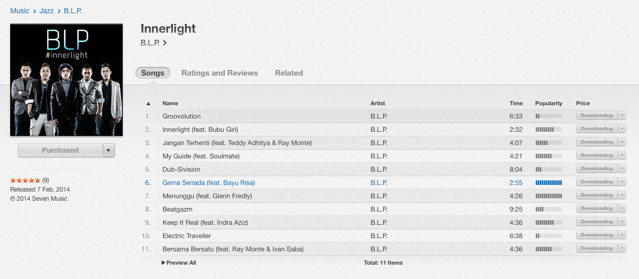 Back to today’s post, saya adalah salah satu pecinta lagu-lagu BLP. Apalagi album terakhirnya (yang ini) menurut saya sangat groovy dan asyik untuk didengarkan. Setelah penantian cukup panjang, akhirnya muncul juga album BLP yang berjudul Innerlight. Dari cover albumnya, terlihat konsep visual yang mengedepankan kedewasaan dan hal tersebut tercermin juga di lagu-lagu dalam album barunya ini. Menurut saya lagu-lagu di album Innerlight ini lebih banyak soul dan jazznya dibandingkan funk dan popnya. Kalau di album Generasi Synergi banyak lagu upbeat, penuh dengan semangat dan hentakan, di Innerlight ini lebih banyak lagu yang lebih pelan, santai, dan nyaman untuk di dengarkan. Album Innerlight ini juga dipenuhi kolaborasi dengan musisi-musisi jenius seperti lagu “Menunggu” featuring Glenn Fredly, “Keep it Real” featuring Indra Aziz, dan lagu favorit saya di album ini “Jangan Terhenti” feat Teddy Adhitya (dulu personil Boyz2boys, sekarang banyak manggung bantuin BLP buat gantiin Mathew Sayersz) dan Ray Monte. Kalau pas masih ada Mathew ada sekitar 5-6 track yang lagu dengan vokal, di album yang sekarang juga sama walaupun vokalisnya ganti-ganti (featuring). Terus juga rasanya di album ini gak ada lagu yang disiapin untuk pasar mainstream seperti lagu “Saat Kau Miliku.” Jadi emang album ini kayaknya didedikasiin banget buat fans setianya yang menyukai aliran jazz, funk, dan soul. Lalu untuk lagu instrumentalnya juga saya tidak menemukan yang seenak lagu “Seven 7” di album sebelumnya. Padahal di situ saxophone-nya Dennis Junio asyik banget di dengernya 🙂 Jadi kalau saya simpulkan, emang ada warna yang berbeda yang ingin diperdengarkan kepada fans-fansnya di album ini (mungkin itu kenapa namanya innerlight :p #ngasal).