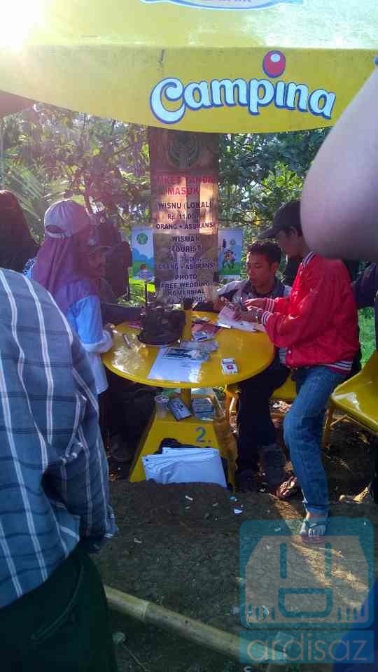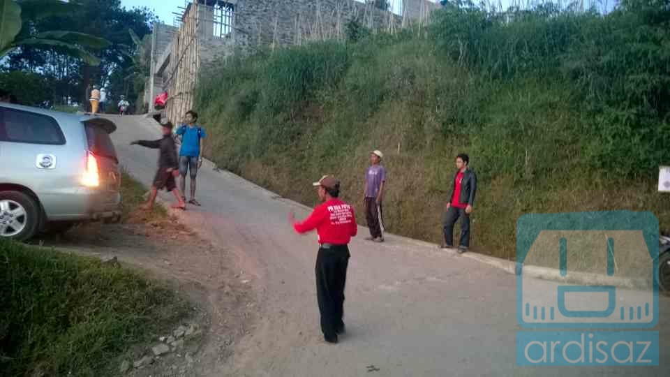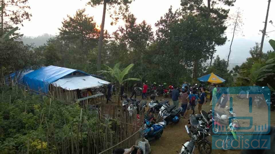 Mendekati tempatnya, banyak warga sekitar yang terlihat sigap mengatur lalu lintas kendaraan agar bergantian. Ada satu tanjakan tajam terakhir dimana hanya muat satu mobil yang dijaga ketat oleh penduduk. Tempat parkir, di sana tidak ada tempat parkir. Innova parkir di rumah warga, Juke parkir di rumah yang sedang dibangung di samping tanjakan bersama beberapa mobil lain. Konon ke atas lagi ada parkiran, tapi katanya penuh. Dari situ, kami masih jalan lagi sekitar 1 km. Di sekitar jalan, sudah banyak pedagang yang membuka lapaknya. Saya sempat ngobrol dengan ibu-ibu yang jual aqua, katanya emang tempat ini baru rame sekitar 2 minggu puasa, terus makin rame abis lebaran. Katanya ibu ini sih gara-gara internet. Saya juga ngobrol dengan warga sekitar, katanya juga abis lebaran aja nih tempat ini tiba-tiba rame.