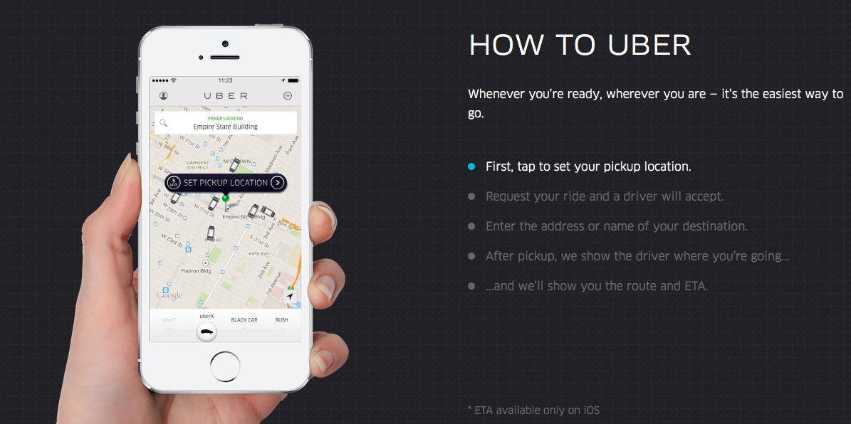 Uber merupakan sebuah startup yang sudah berdiri dari tahun 2009 di Amerika. Uber merupakan sebuah platform yang menghubungkan antara pengguna transportasi dengan penyedia jasa transportasi seperti taksi atau jasa penyewaan mobil. Dari sisi teknologi, Uber memiliki kelebihan yang sangat memudahkan penggunanya seperti :