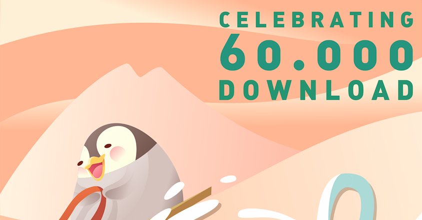 Satu milestone dari game Roly Poly Penguin telah tercapai yakni terunduh sebanyak 60.000 pengguna. Sebenernya target kami lebih tinggi dari ini, kami mengejar satu juta download. Namun karena ini merupakan produk pertama kami, jadi kami masih belajar caranya untuk menuju ke sana.
