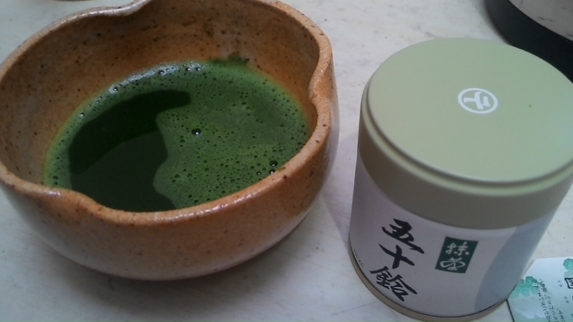 Jadi ada dua tempat penampungan bubuk matcha. Tempat kecil isinya bubuk matcha dan tempat besar yang kosong buat naro bubuk matcha yang sudah dihaluskan. Yang di tempat kecil ini bisa tahan cukup lama, sedangkan yang sudah dihaluskan untuk dikonsumsi dalam waktu dekat. Jadi pada tahapan ini kita menyaring bubuk matcha sebelum digunakan untuk kita seduh.