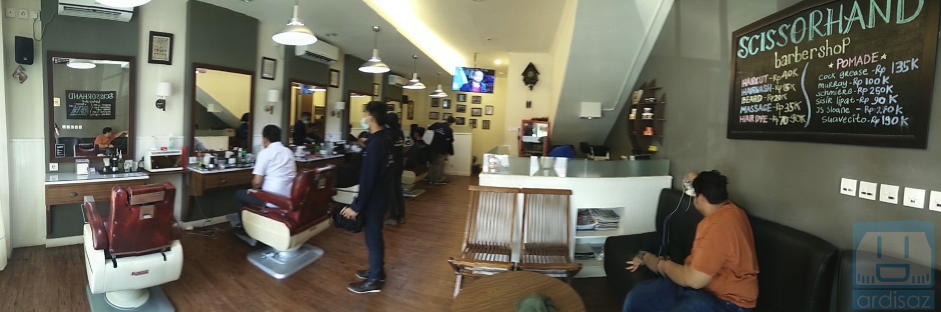 Si Scissorhand ini bisa dibilang barber shop hipster yang lagi digandrungi anak-anak muda masa kini. Potongan rambut favorit anak gaul sekarang kan yang modelnya undercut gitu, pinggirnya tipis banget tapi sisanya masih panjang. Saya pribadi menganggap model itu agak aneh sih :p Dan gak ada niat untuk potong dengan model begitu.
