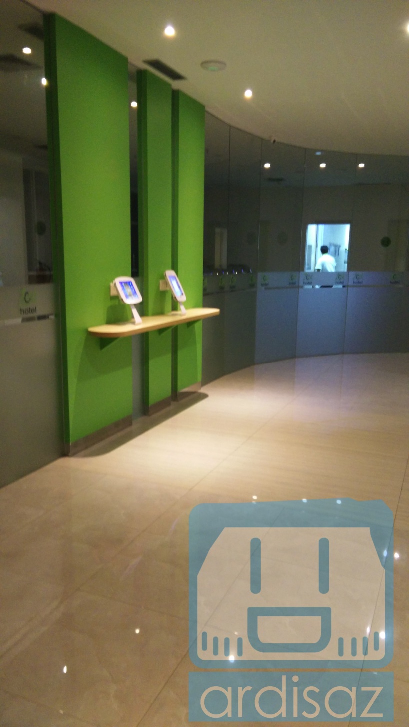 Selesai cek in, pas jalan mau ke lift, ngeliat ada meja isinya ipad2 gitu. Wih, niat betul ngasih fasilitas begitu. Terus pas mau naik lift, liftnya juga yang touchscreen. Simpel sih, but it’s a nice gesture untuk itungan budget hotel yah. Berarti so far impressionnya oke, tinggal kita liat aja kamarnya. Bakal seminimalis apa.