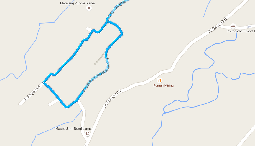 Saya ikutin jalan itu, akhirnya muncul juga di jalan yang seharusnya saya lewati kalau belok di belokan kedua (jl. Dago Giri), bukan belokan pertama. Jalan yang direkomendasikan google di awal perjalan saya, bukan jalan hasil rerouting google akibat saya salah belok. Dan akhirnya sampai juga di lokasinya dengan segala drama dan kenekatan ini.