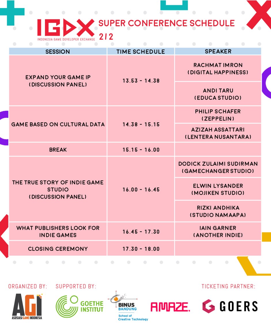 Untuk IGDX tahun ini, waktu persiapannya sangat sebentar yakni kurang dari 1 tahun dan juga panitia semuanya part time, bahkan mungkin quarter time, karena mereka semua punya prioritas mengurus studio game masing-masing. Tidak ada satupun dari panitia yang dibayar, tapi mereka semua mencurahkan energi dan perhatian mereka untuk mengahdirkan acara yang dibutuhkan oleh ekosistem game developer lokal kita. Mungkin tentu persiapan dan penyelanggaran akan jauh dari mimpi kami yang besar, tapi ini adalah first step. Dream big, start small, act now. Yang penting harus dimulai dulu dengan segala keterbatasannya. Harapannya, tahun depan harus lebih baik lagi.