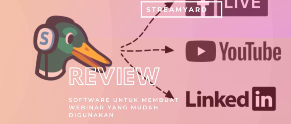 Untuk bisa mengadakan webinar, kita butuh sofware yang enak dan mudah dipakai. Dulu saya cuma tahu pakai fitur Google Hangout yang dikoneksikan ke Youtube untuk bikin Youtube live. Lalu dengan semakin banyaknya kebutuhan akan online seminar ini, saya semakin terpapar dengan banyak software lainnya yang memiliki kemampuan lebih canggih. Selama ini yang banyak digunakan oleh orang-orang adalah webinars menggunakan Zoom. Ini merupakan platform yang menurut saya cukup menarik digunakan dan easy to use. Tapi karena Zoom dibuat bukan dengan mindset webinar inmind, tentu ada keterbatasannya. Lalu suatu ketika, saya diundang untuk mengisi sharing session yang diadakan Baparekraf. Di situlah saya pertama kali mengenal Streamyard.
