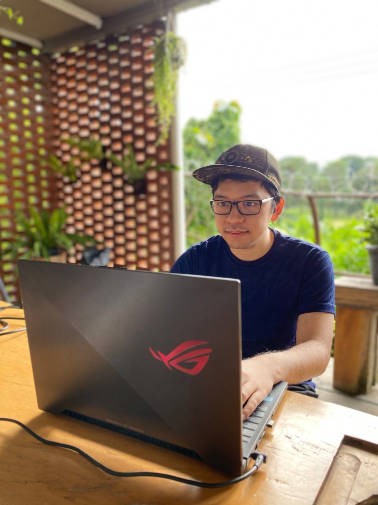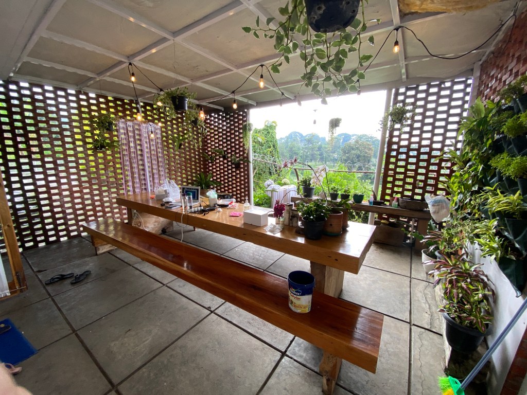 Terus yang berkesan lagi adalah desainnya yang unik. Namanya Rumah Teras Bata, jadi keliatan unsur batanya dominan banget. Dan paling pewe adalah area makannya yang berada di teras luar yang menghadap ke lembah. Jadi kalau lagi makan, nuansanya semi outdoor gitu. Dan karena hari kamis-jumat itu masih sambil pada kerja remote, jadi area dining ini berubah jadi area kerja. Dan visionernya, pemilik villa nya udah naro colokan listrik di area meja. Jadi kerja sambil menikmati pemandangan itu sangat-sangat seru.