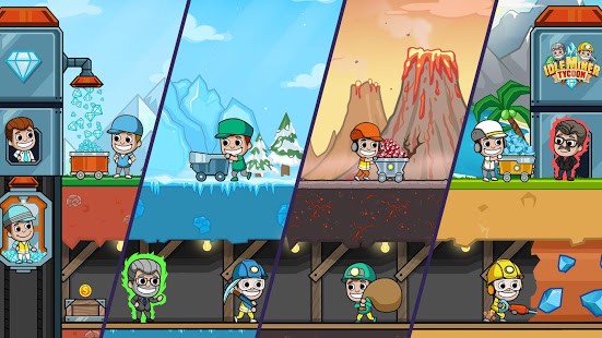 Yang kedua adalah visibile upgrade. Di beberapa game idle clicker, keberadaan upgrade tidak mempengaruhi canvas bermain kita. Hanya mungkin meta yang di dapat semakin besar atau aset beberapa sprite di canvas akan berubah. Tapi dunia nya tidak bertambah luas. Di Idle Miner Tycoon, tidak hanya mine nya semakin dalam, kalau sudah progressing, kita akan bisa pindah ke area lain.