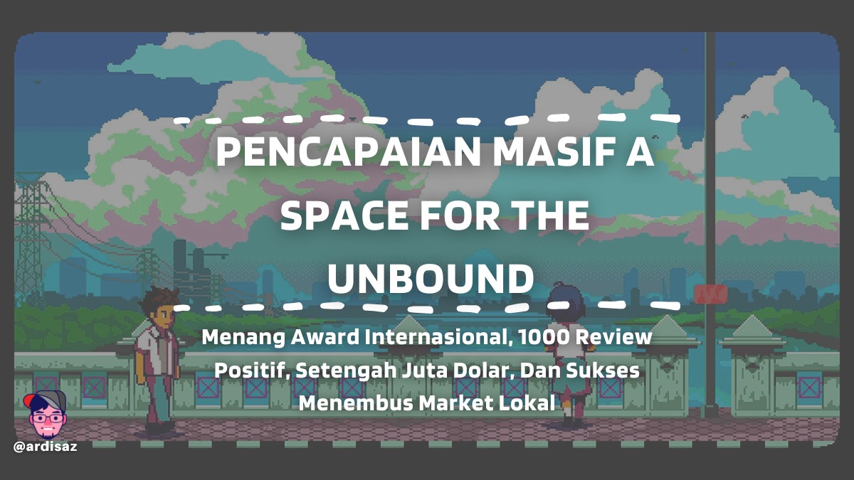 Bagi saya, A Space For The Unbound merupakan sebuah milestone penting untuk industri game di Indonesia. Pertama tentu dari sisi komersial nya dulu. Dalam waktu sebulan, sudah bisa mendapatkan 1000 review yang positif di steam, cukup viral dimainkan oleh banyak youtuber dan content creator, menang banyak award di Jepang, Jerman, US, dan terjual sampai 30rb unit di berbagai platform. Kalau bicara gross, dengan harga 15 dolar, maka A Space For The Unbound sudah mengantungi hampir setengah juta USD dolar. Ini merupakan pencapaian yang menurut saya sangat baik.
