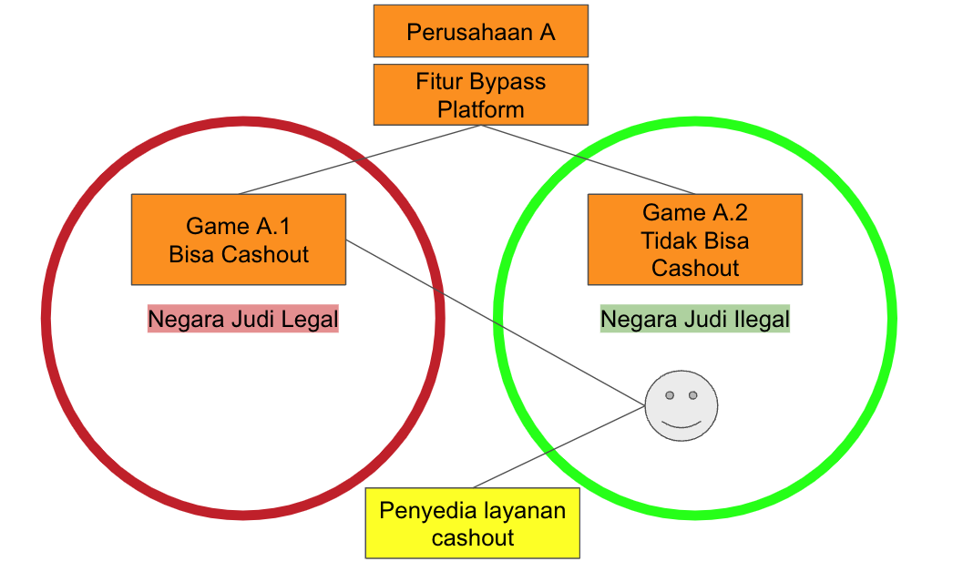 Kalau kasusnya pada akhirnya sebuah brand A memiliki versi APK hijau yang official di Google Play dan tanpa fitur cashout dan APK merah yang tersebar bebas di internet dan memiliki fitur cashout, regulasi kita mengaturnya gimana? Karena kalau di Google Play, sebenernya kita boleh loh publish game judi untuk negara-negara yang mengizinkan judi. Tapi klo Indonesia karena gak boleh, developer game judi harus mengubah game nya jadi gak bisa untuk judi. Game hijau ini aman dan sesuai regulasi di Indonesia. Tapi masalahnya masyarakat kita pinter nemu celah untuk mendapatkan versi Game merah nya. Dan kita gak bisa juga menyalahkan brand A kalau pengguna di Indonesia nyari celah untuk download game brand A versi merah. Karena di era internet gini, distribusi dengan geo-restriction itu rasanya lemah banget sih pengawasan dan pengendaliannya.