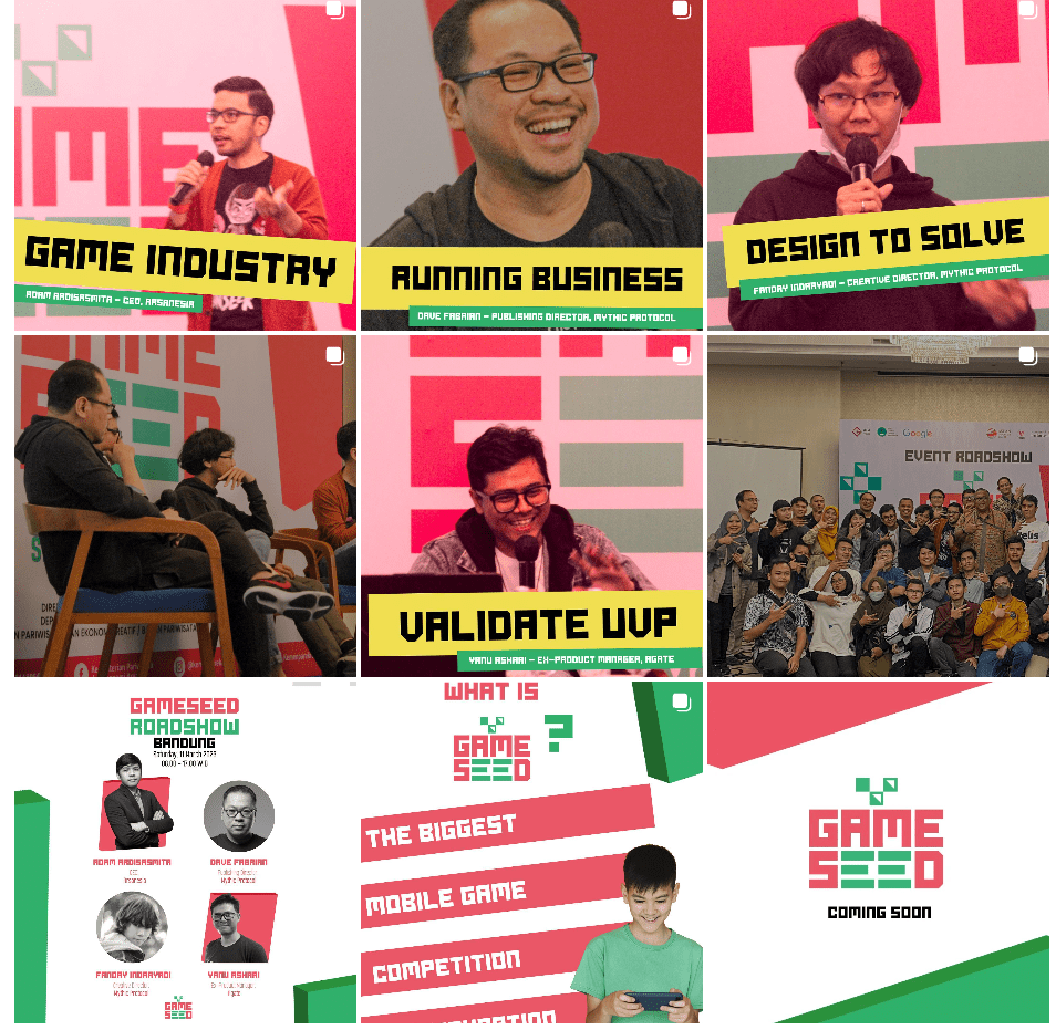 GameSeed melakukan roadshow ke kota-kota di Indonesia untuk mencari bibit-bibit game developer baru di Indonesia. Setelah itu 20 game terbaik akan mendapaktan pendampingan dari mentor secara intensif selama 8 minggu. 10 game terbaik akan diterbangkan ke Jakarta untuk grand final dan mencari GameSeed terbaik di Indonesia. Cek info tentang gameseed di sini