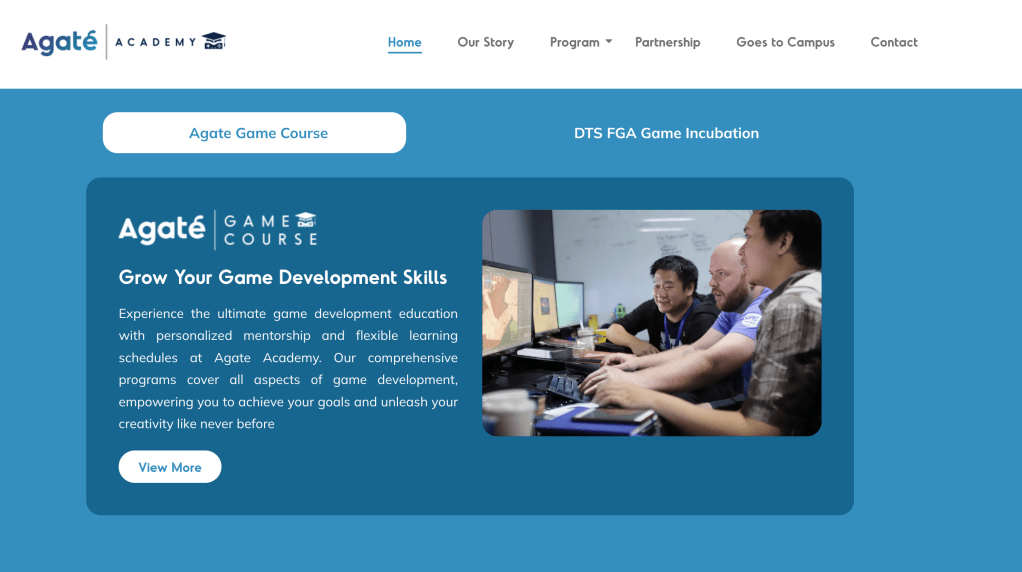 Agate Academy merupakan program pelatihan secara online yang dikembangkan oleh Agate, studio game lokal terbesar di Indonesia. Di program ini, kamu bisa belajar berbagai course seperti Game Development 101, 2D physic-based Game Programming, Low Poly 3D modeling & Texturing, dan lain-lain. Program ini juga pernah pekerja sama dengan program Digital Talent Scholarship, Kampus Merdeka, AGI, Balai Diklat Industri, dan Indigo. Info lengkapnya bisa dicek di sini.