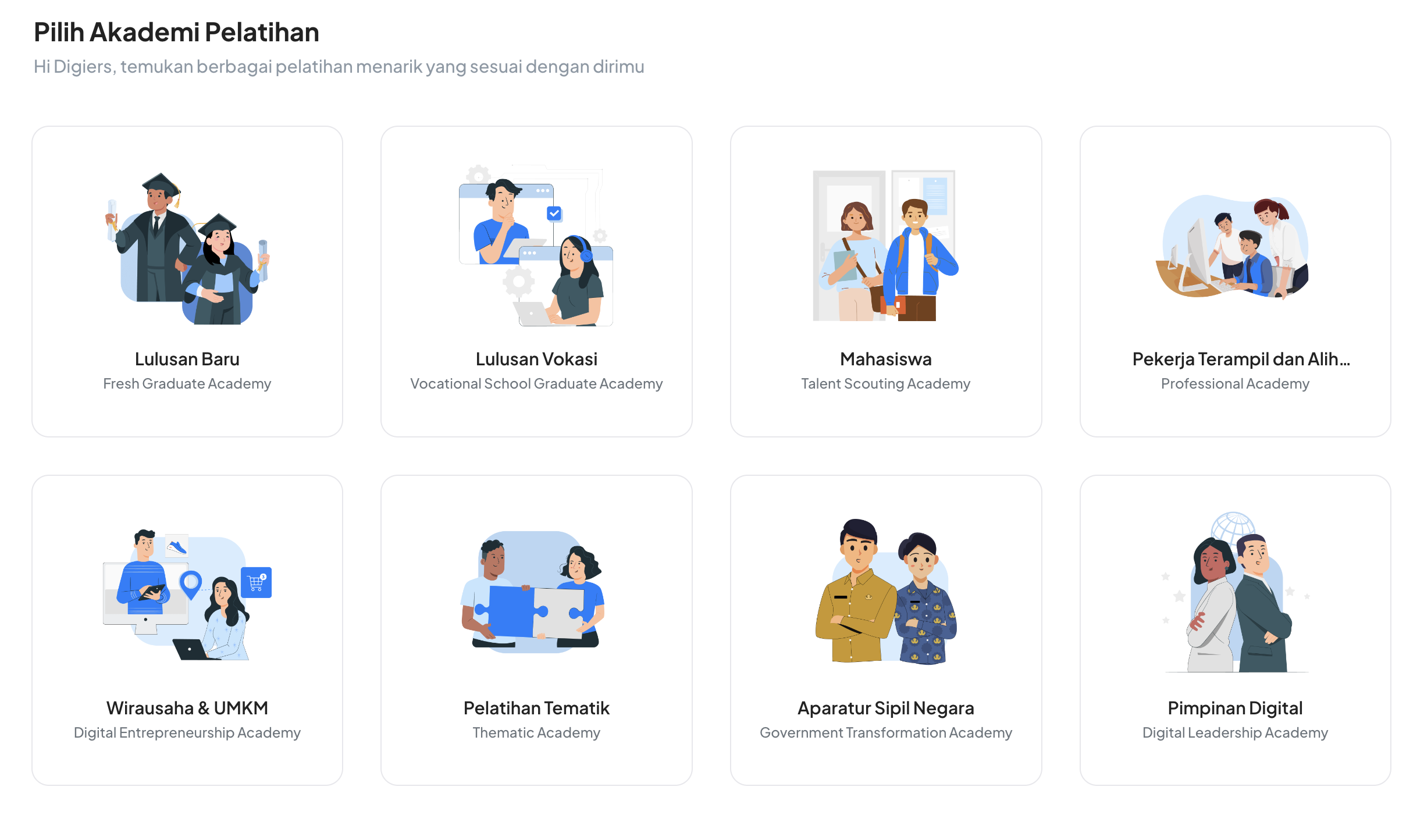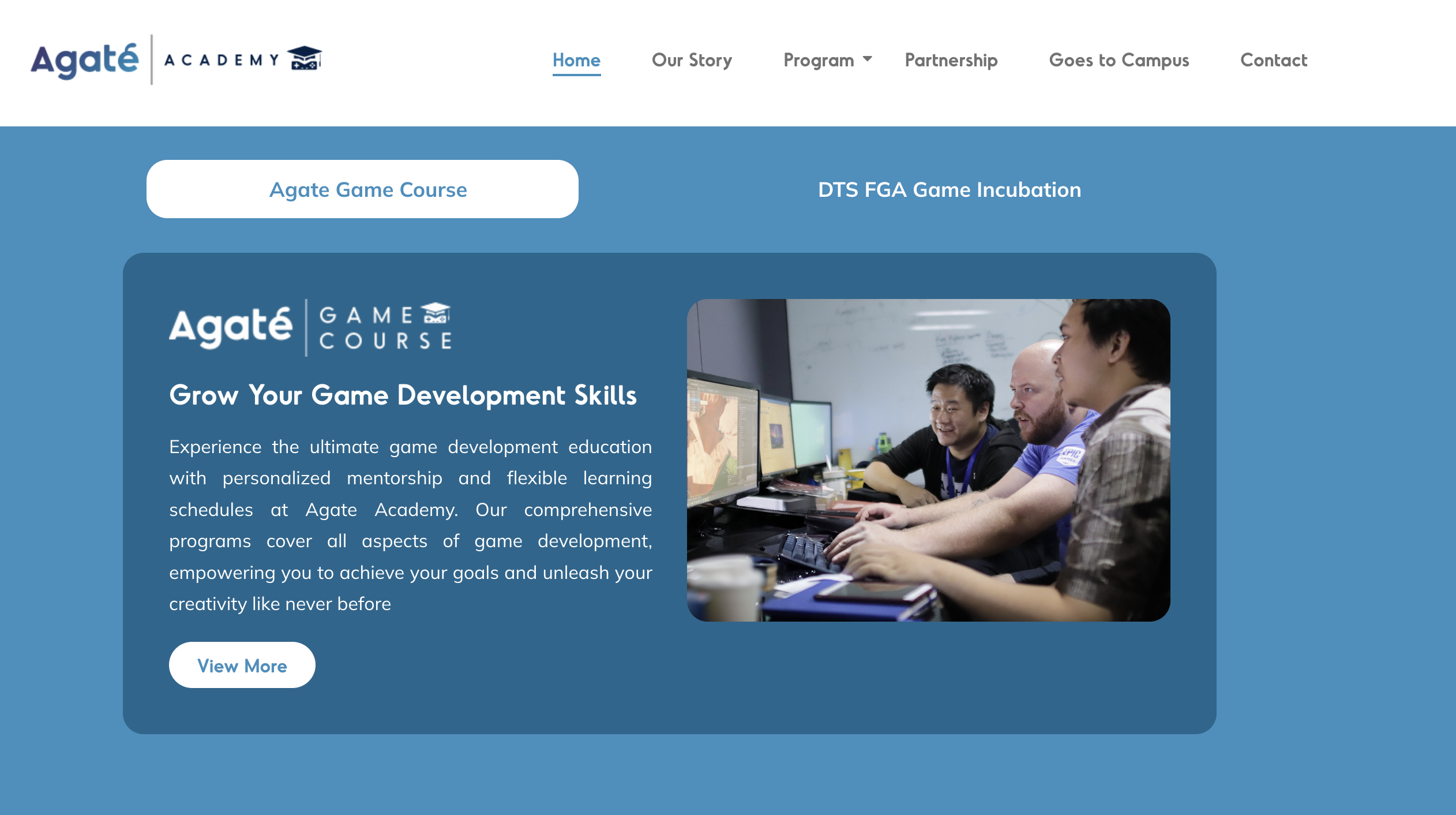 Agate Academy merupakan program pelatihan secara online yang dikembangkan oleh Agate, studio game lokal terbesar di Indonesia. Di program ini, kamu bisa belajar berbagai course seperti Game Development 101, 2D physic-based Game Programming, Low Poly 3D modeling & Texturing, dan lain-lain. Program ini juga pernah pekerja sama dengan program Digital Talent Scholarship, Kampus Merdeka, AGI, Balai Diklat Industri, dan Indigo. Info lengkapnya bisa dicek di sini.