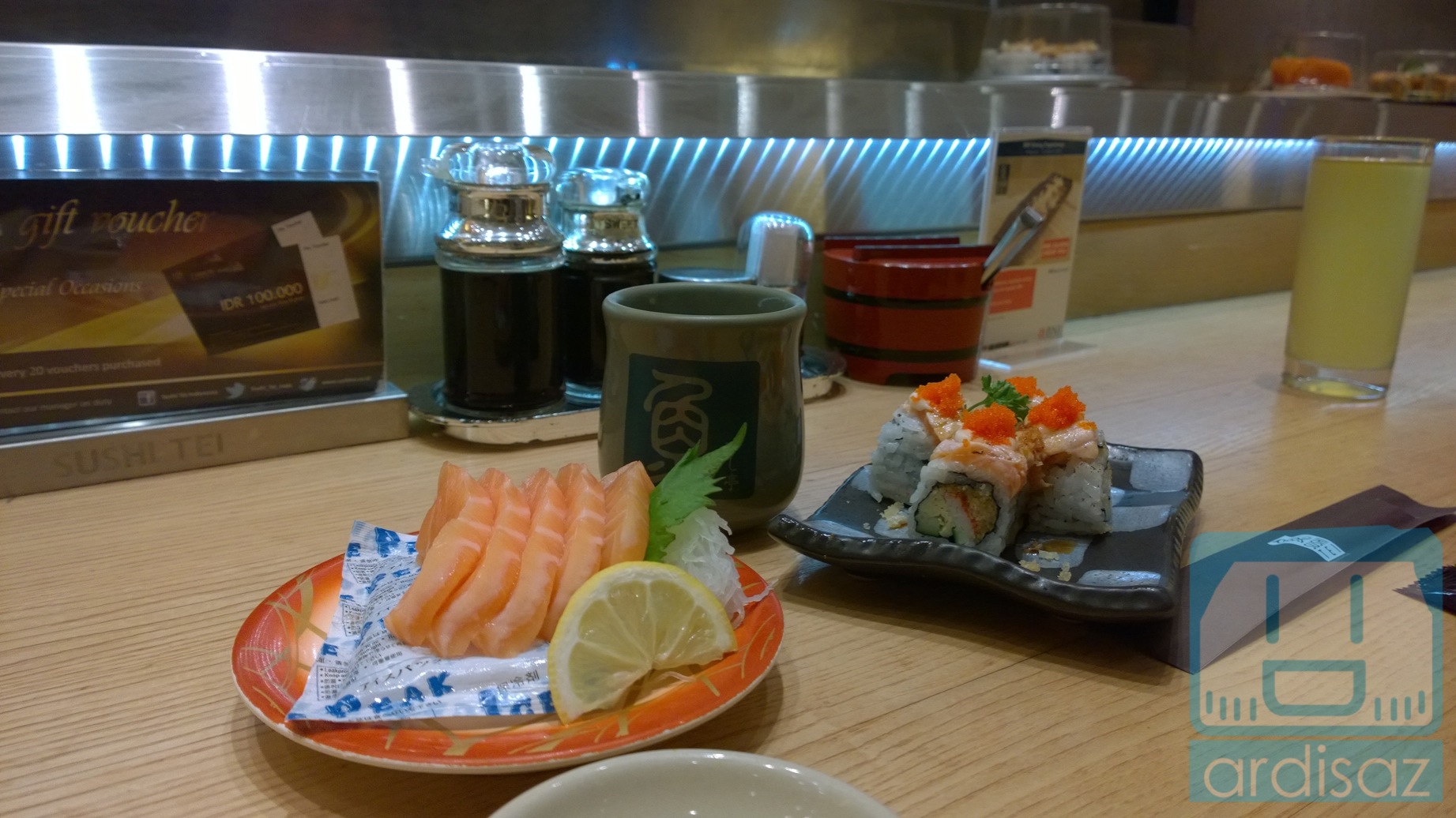 watermarkedAdam Lumia 1020_20140827_019-1 Menu favorit saya (kiri, salmon sashimi) dan istri (kanan, Salmon Crispy Aburi)